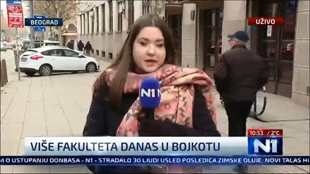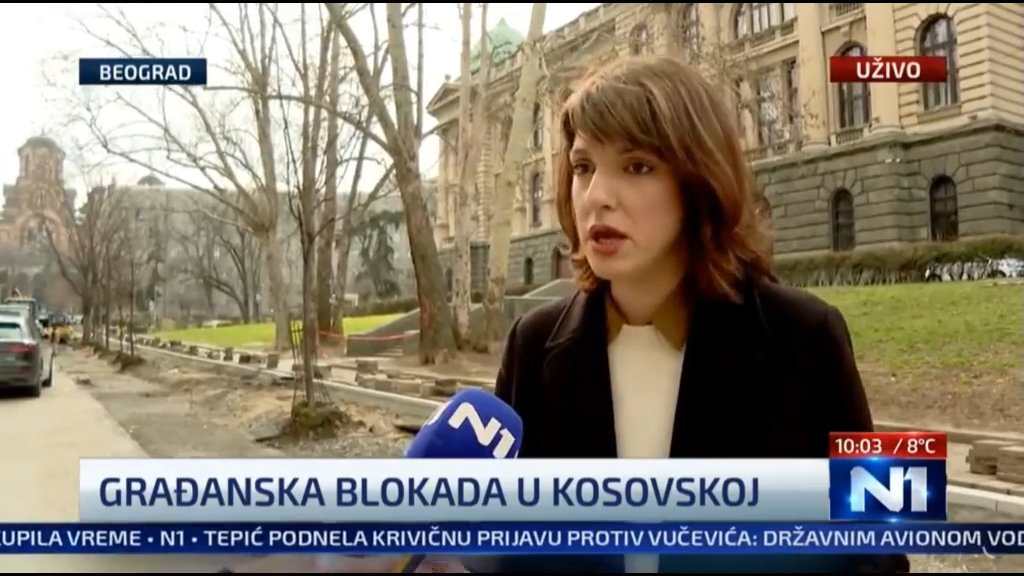 Tokom protesta u centru Beograda, žena je snimala i pratila reporterku N1 televizije, vikajući na okupljene, nakon čega je policija izvršila njenu privodu. Incident predstavlja novo ometanje rada novinarske ekipe N1.